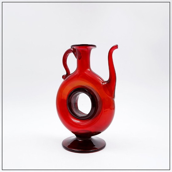Caraffa vintage in vetro soffiato rosso "Anneau"