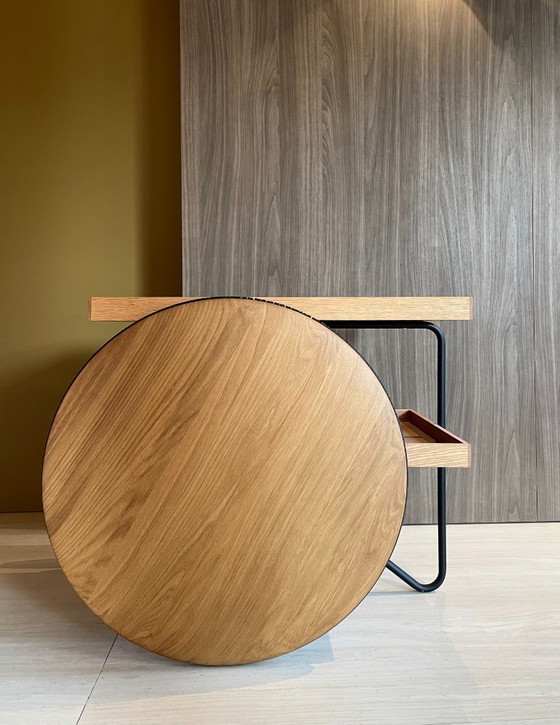 Il carrello portavivande Chariot di Casamania è un design giocoso e funzionale. La pelle che riveste le ruote è anticata, ma può essere riordinata.