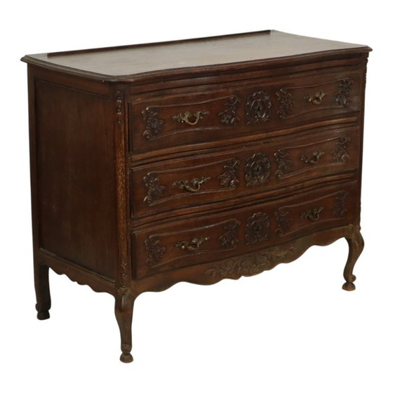 Cassettiera antica bombata in rovere massello con maniglie in bronzo, circa 1880, Francia.