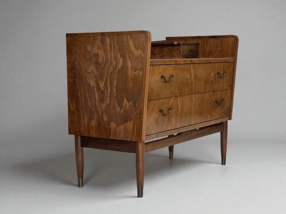 Cassettiera danese degli anni '70. Legno di faggio, maniglie e tasselli in ottone sulle gambe. Buone condizioni originali: nessun odore, nessuna macchia e costruzione stabile. Prodotta da un produttore di mobili danese tra il 1965 e il 1970. Design vintage scandinavo originale direttamente dalla Danimarca.