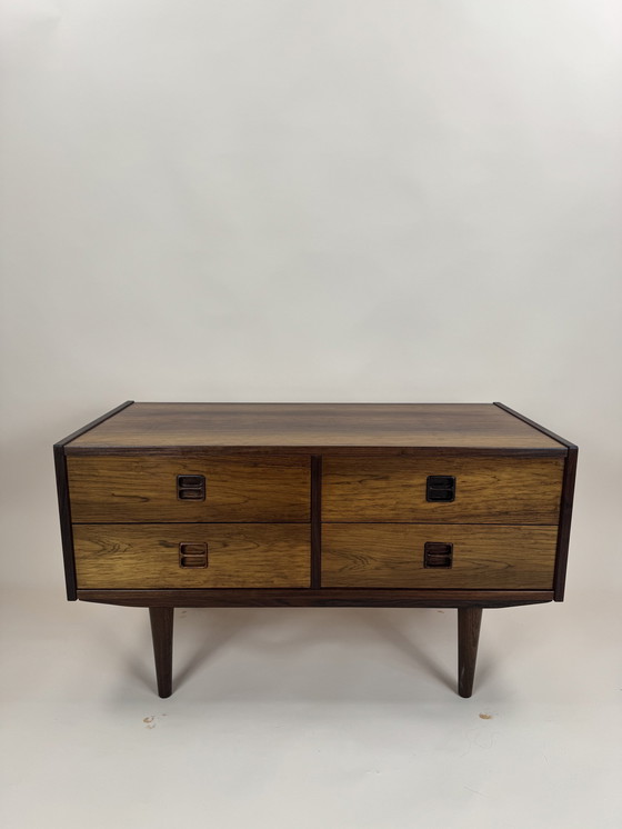 ⭐️ Cassettiera danese di metà secolo in palissandro ⭐️ Una straordinaria cassettiera danese di metà secolo con una splendida finitura in legno bicolore. Le calde venature naturali del legno contrastano elegantemente con la struttura in palissandro più scuro, creando un look sofisticato. Dotata di quattro ampi cassetti con eleganti maniglie incassate, questa cassettiera offre stile e funzionalità, perfetta per qualsiasi interno vintage o moderno! ⭐️ Dimensioni: 51 x 90 x 42 cm (A x L x P) ⭐️ In eccellenti condizioni vintage, minimi segni di usura
