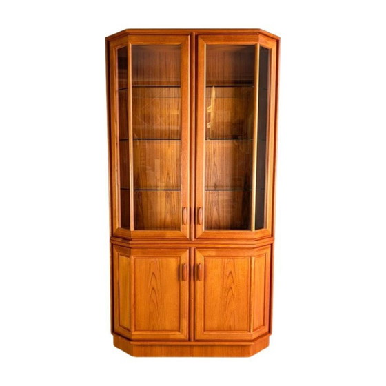 Proponiamo in vendita una bellissima vetrina vintage in teak del tradizionale produttore danese Dyrlund. Il mobile ha due ante in legno nella parte inferiore e due ante vetrate nella parte superiore, dietro le quali si trovano un ripiano in legno regolabile in altezza e tre ripiani in vetro.