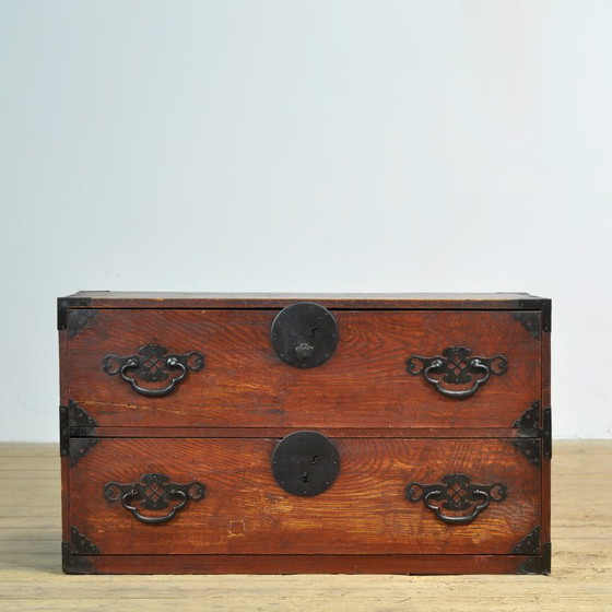 Cassettiera tradizionale giapponese Tansu risalente al 1870 circa. Prodotta durante la tarda era Meiji (1868-1912), questa cassettiera emana autenticità e carattere. Il mobile presenta un aspetto caldo e vissuto, che ha resistito alla prova del tempo. Funzionale e affascinante, questa Tansu offre uno spazio contenitivo versatile, perfetto per riporre documenti o oggetti personali. Un pezzo che aggiunge un tocco storico unico a qualsiasi interno, moderno o classico.