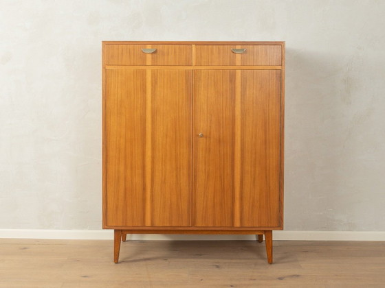 Rara cassettiera degli anni '50 di Helmut Magg per WK Möbel. Corpo di alta qualità in noce impiallacciato con due ante, due ripiani, due cassetti e piedini conici.