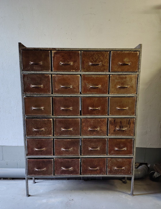 - Le macchie di ruggine e i graffi visibili conferiscono alla cassettiera un fascino vintage unico.