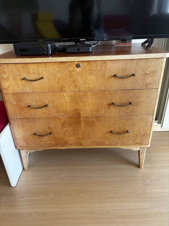 Cassettiera vintage originale degli anni '50/'60, marca Imexcotra, Anversa. Ancora molto robusta e intatta, ma potrebbe beneficiare di una mano di vernice.