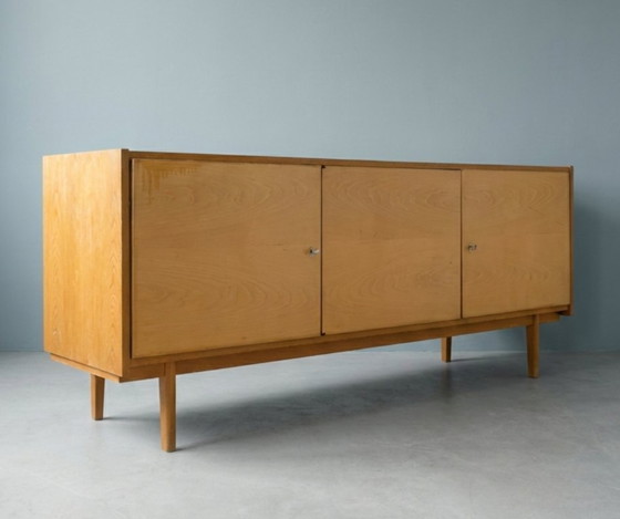 Il mobile offre un pratico spazio contenitivo con un ripiano interno, rendendolo adatto all'uso in soggiorno, camera da letto, corridoio o ufficio. Si mantiene in ottime condizioni originali, con solo lievi abrasioni superficiali dovute al tempo. La struttura è solida, l'impiallacciatura è sana e il mobile è perfettamente funzionante e pronto per l'uso immediato.