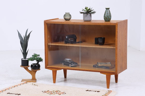 Cassettiera vintage con ante in vetro anni '60 | Armadio da corridoio di metà secolo | Legno retrò anni '70 #06-18