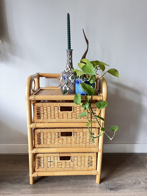 Aggiungi un tocco di fascino vintage al tuo spazio con questa deliziosa cassettiera in rattan. Perfetta per chi ama un tocco retrò, questa cassettiera è allo stesso tempo elegante e funzionale, offrendo ampio spazio con i suoi tre ampi cassetti.