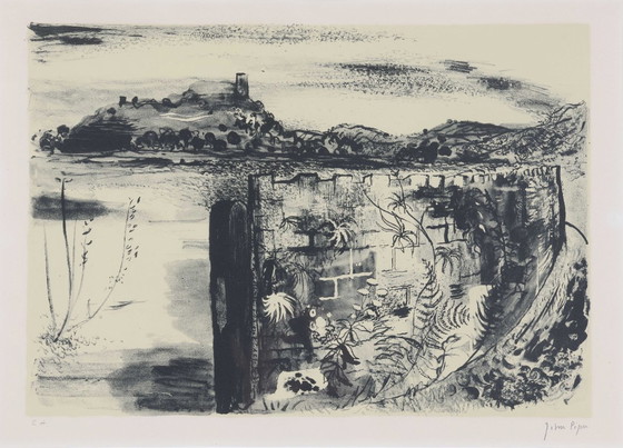 John Piper (1903–1992) Castle, ca. 1955. Litografia a colori su carta Arches. Firma a mano sul margine inferiore destro. Marcatura EA a matita sul margine inferiore sinistro. Dimensioni con cornice: 70 x 84 x 3 cm. Dimensioni: Formato del foglio: 43 x 60 cm.