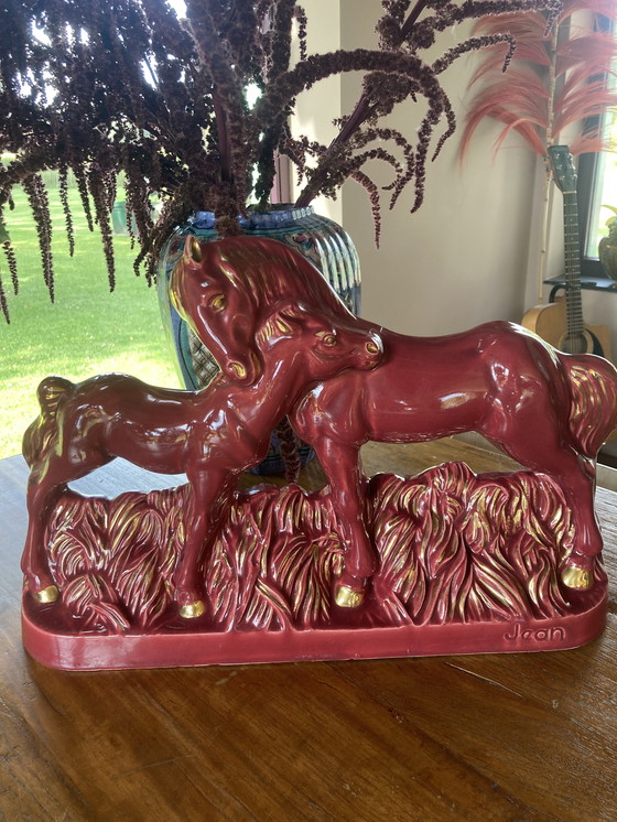 Cavalla JEAN in ceramica Art Déco francese degli anni '30 con puledro