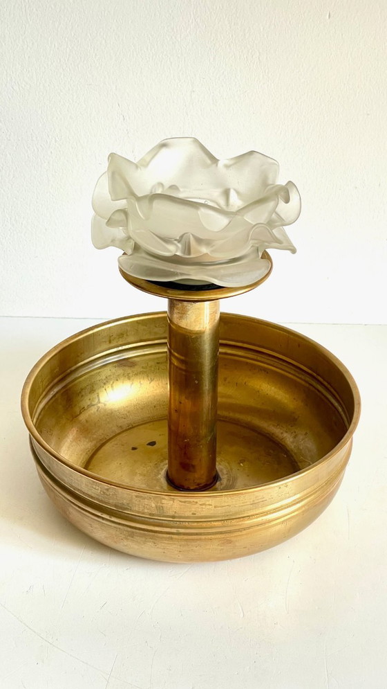Stupendo e unico centrotavola in ottone e vetro smerigliato vintage, siamo totalmente affascinati!