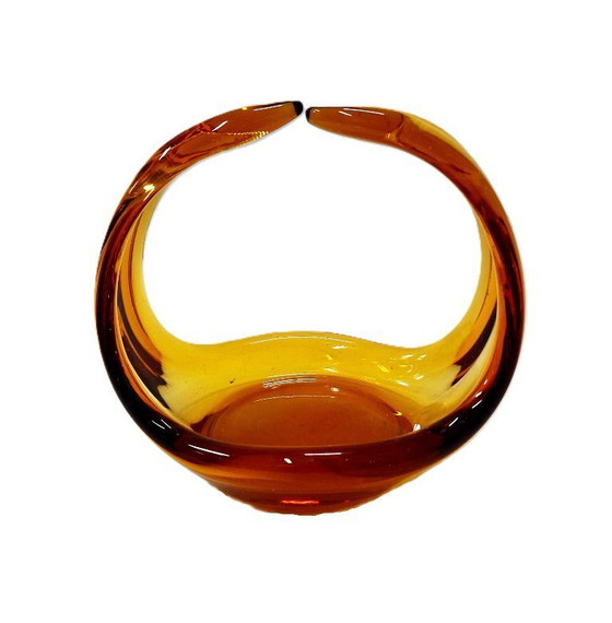 Cestino in vetro ambrato vintage – Centrotavola/ciotola per dolciumi scultorea