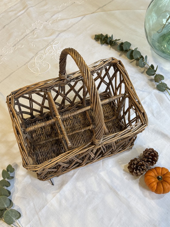 Cestino vintage in vimini per bottiglie.