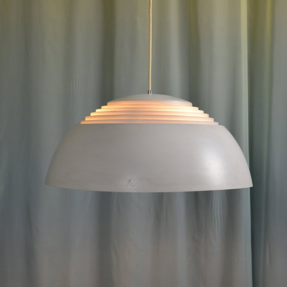 La lampada a sospensione AJ Royal, disegnata da Arne Jacobsen e prodotta da Louis Poulsen, è un pezzo iconico del 1957. Questa lampada coniuga eleganza e funzionalità ed è un complemento perfetto per qualsiasi interno. Il paralume in metallo bianco emette una luce morbida e diffusa che crea un'atmosfera calda. Con il suo cablaggio originale e il design senza tempo, questa lampada è un elemento di spicco sia dal punto di vista pratico che estetico.