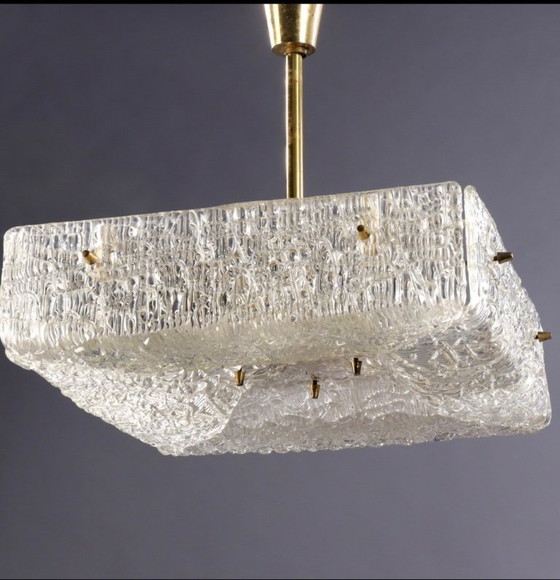 Questa è una splendida lampada a sospensione Kalmar degli anni '70, caratterizzata da una bella combinazione di vetro testurizzato ed elementi in ottone. Il design è la quintessenza del Mid Century Modern e offre un'estetica senza tempo che si adatta a diversi stili di interni. Il vetro ha un motivo unico che diffonde la luce in modo elegante, creando un'atmosfera calda e invitante. Perfetto per aggiungere un tocco di fascino vintage a qualsiasi ambiente.