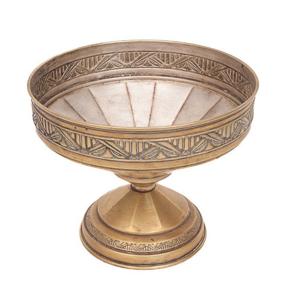 Calice in ottone. Art Déco. Decorato con fregi geometrici. Circa 1900