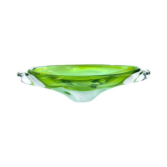 Ciotola in vetro verde, design di J. Broz, Skrdlovice, Cecoslovacchia, anni 1960.