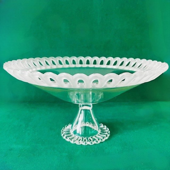 Splendida fruttiera/dessert vintage in cristallo con piede, realizzata in cristallo degli anni '60. La fruttiera presenta una splendida combinazione di cristallo opaco e lucido.
