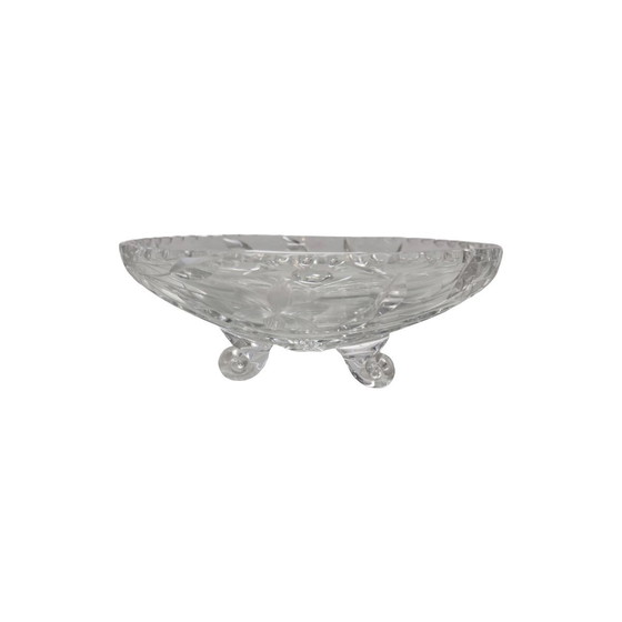 Ciotola rotonda in cristallo tagliato, della seconda metà del XX secolo. Bella e decorativa ciotola rotonda in cristallo tagliato che poggia su 3 piedi. Per quanto visto non ci sono schegge.