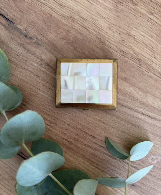 Portacipria vintage in madreperla e ottone, anni '50 📌 Buone condizioni 📏 Dimensioni: 6 x 5 cm