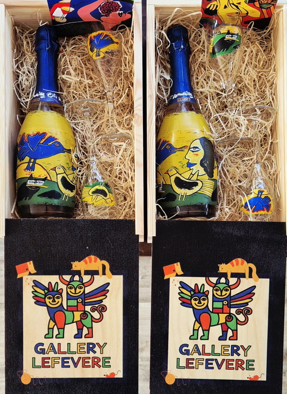 Scoprite la raffinatezza del cofanetto regalo Corneille Cuvée, la scelta perfetta per gli amanti dell'arte e gli intenditori. Presentato in un'elegante scatola di legno, questo cofanetto contiene una bottiglia di spumante e due flûte abbinate, ciascuna decorata con le iconiche e colorate illustrazioni di Corneille. I colori vivaci e il design unico rendono questo regalo un'opera d'arte che colpisce sia alla vista che al gusto.