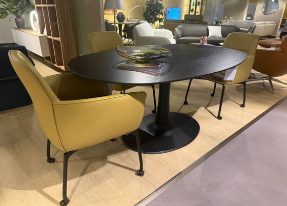 Una base e un piano collegati da una colonna dritta. Ecco quanto è puro Columna. L'unica frivolezza che Hugo de Ruiter si è concesso è il modo in cui la colonna si collega alla base: scanalata, come un'antica colonna di marmo. Il Columna di Leolux è un tavolo molto pratico ed elegante. Rotondo o ovale, così puoi accomodare gli ospiti a tavola senza ingombranti montanti. Columna è anche elegante, con un piano molto sottile in noce massello o rovere. Ceramica, Ceramica lucida o laccata. Infine, Columna è multiuso grazie ai suoi molteplici aspetti. Tavolo da pranzo Leolux Columna, Columna Circum, dimensioni 165 x 110 mm, piano rifinito in rovere tinto M4300 notte opaco, colonna e base circum epossidica.