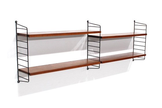 Libreria String, con 3 scale e 4 ripiani, finitura originale in teak anni '60/'70, realizzata in legno massello!