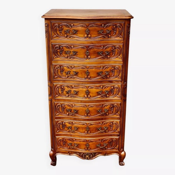 Comò a sette cassetti con incisione in stile Luigi XV