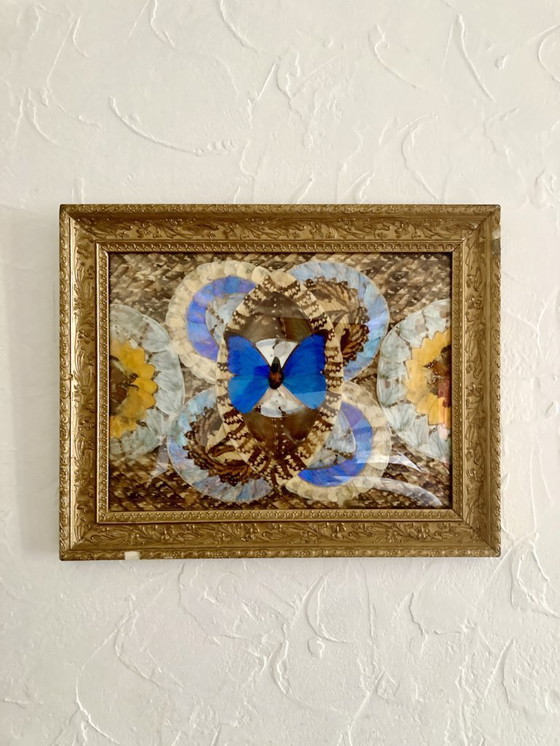Una superba composizione creata in Africa utilizzando ali di farfalla conservate.