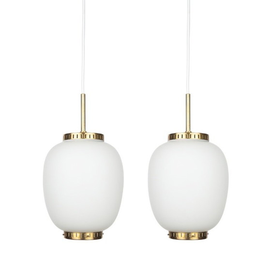 Coppia di 2 lampade a sospensione vintage danesi Kina di Bent Karlby, Lyfa, 1946