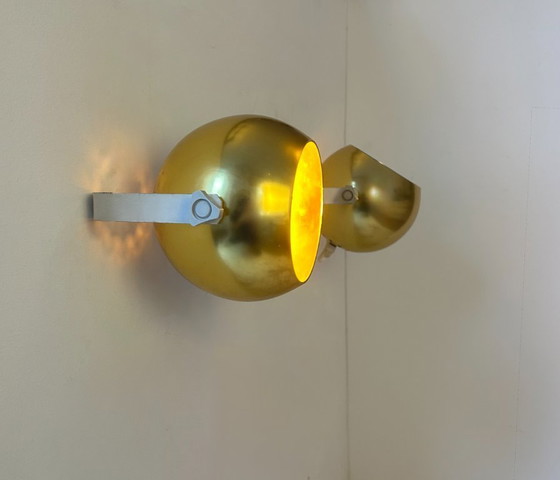 Coppia di applique orientabili in ottone di Parscot, prodotte in Francia negli anni '70. Design tipico degli anni '70, con giochi di luce attraverso le perforazioni sul retro.