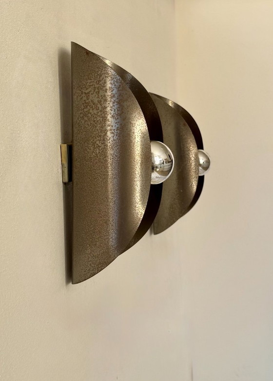 Coppia di applique da parete vintage, acciaio piegato, Francia, 1970