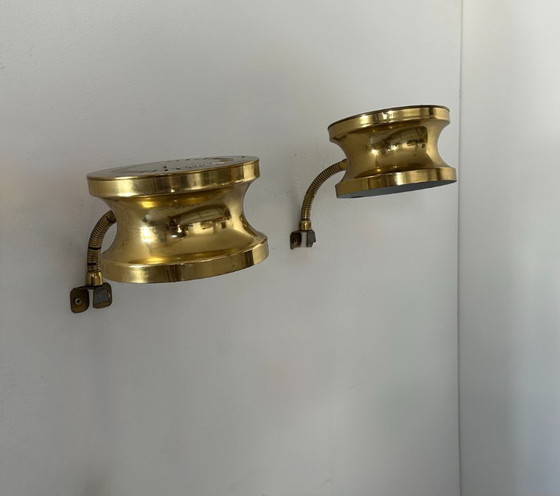 Coppia di applique girevoli d'epoca, ottone, Svezia 1960