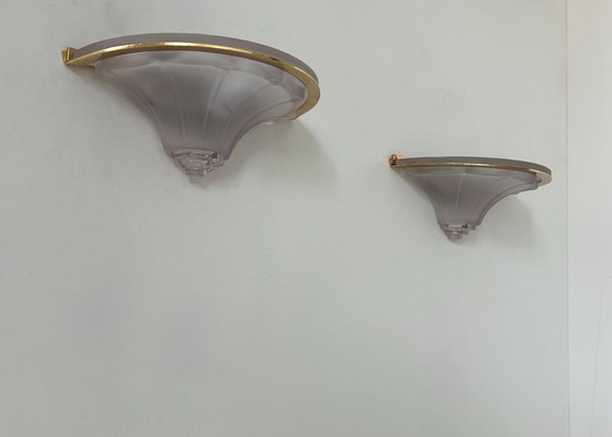 Coppia di appliques in vetro e ottone, prodotte in Francia negli anni Sessanta.