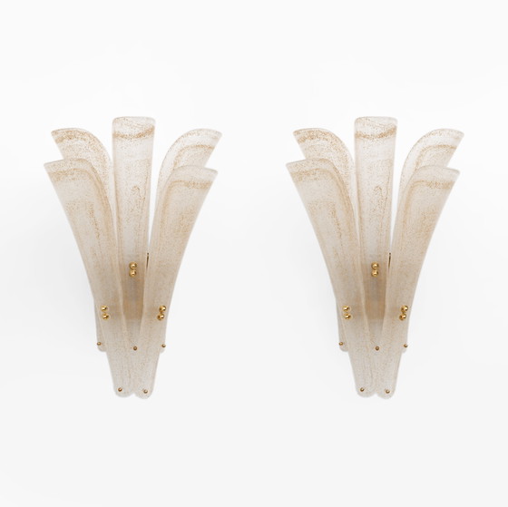 Coppia di applique moderne del XX secolo in vetro di Murano satinato e foglia d'oro