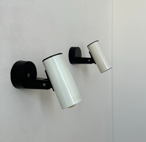 Coppia di applique orientabili in metallo bianco prodotte in Francia negli anni Settanta.