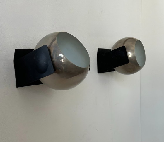 Coppia di applique regolabili, metallo cromato e nero opaco, Francia 1970
