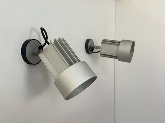 Coppia di applique orientabili con struttura in alluminio prodotte in Italia negli anni Settanta.
