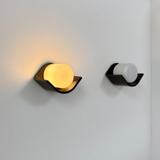 Coppia di applique vintage, Europhane, ABS e vetro opalino, Francia, 1980