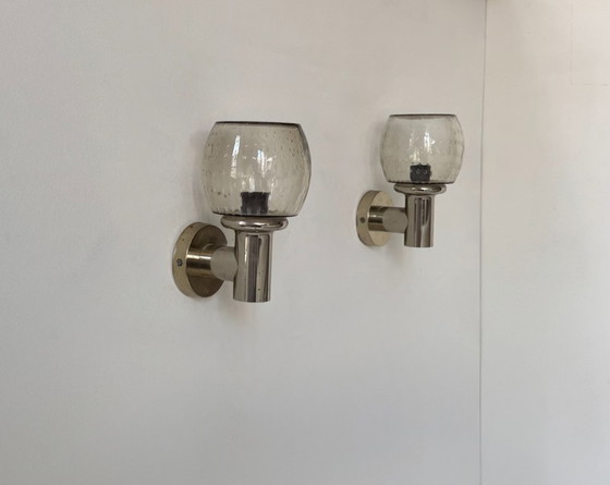 Coppia di applique vintage, metallo cromato e vetro a bolle, Francia, 1960