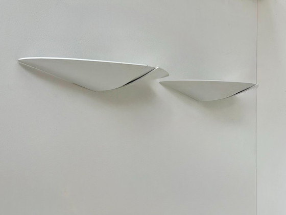 Coppia di applique vintage, metallo laccato bianco, Francia, 1980