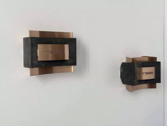 Coppia di applique vintage, metallo nero opaco e rame, Paesi Bassi 1960