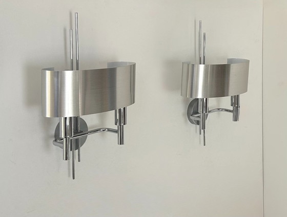 Coppia di applique in metallo spazzolato e cromato prodotte in Francia negli anni Sessanta.
