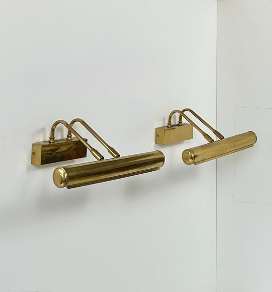 Coppia di applique orientabili in ottone, realizzate in Francia negli anni '70. Eccellente fattura e splendida patina dell'ottone.