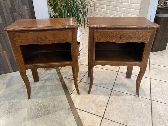 Coppia di comodini in rovere con cassetto e nicchia, anni '50