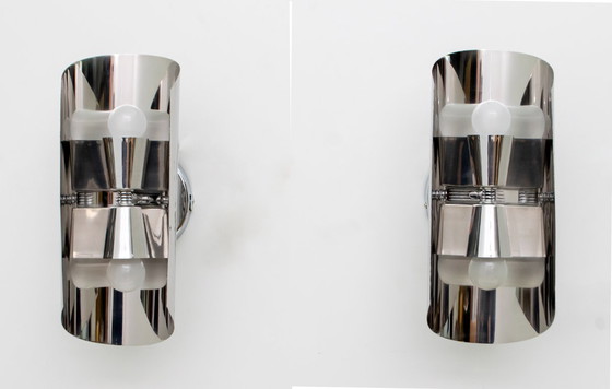 Coppia di lampade da parete in acciaio in stile moderno francese Maria Pergay, anni '70