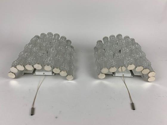 Questa coppia di lampade da parete Kaiser degli anni '70 presenta un design straordinario con elementi in vetro trasparente e accenti in metallo argentato. L'intricata lavorazione del vetro crea un bellissimo effetto di luce, rendendole un'aggiunta perfetta a qualsiasi interno di ispirazione vintage o retrò. Queste lampade sono un ottimo esempio di design anni '70, che unisce funzionalità e fascino estetico.