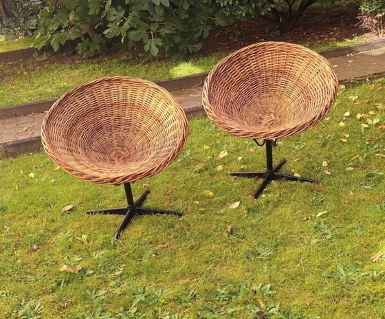 Coppia di poltrone a capsula in bambù e ferro con funzione girevole, anni '60