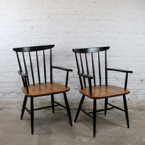 Coppia di poltrone vintage in stile scandinavo, probabilmente di origine belga o olandese, nello stile di Tapiovaara, realizzate in legno massello.